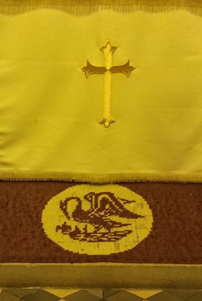 Here are a couple more pictures of the pelican-in-her-peity, taken about the place on my phone, just incase you thought I was exaggerating that story. I've read that it is often given the body of a swan and the head of an eagle, which looks to be true in at least some instances, but makes one wonder why bother then calling it a pelican.