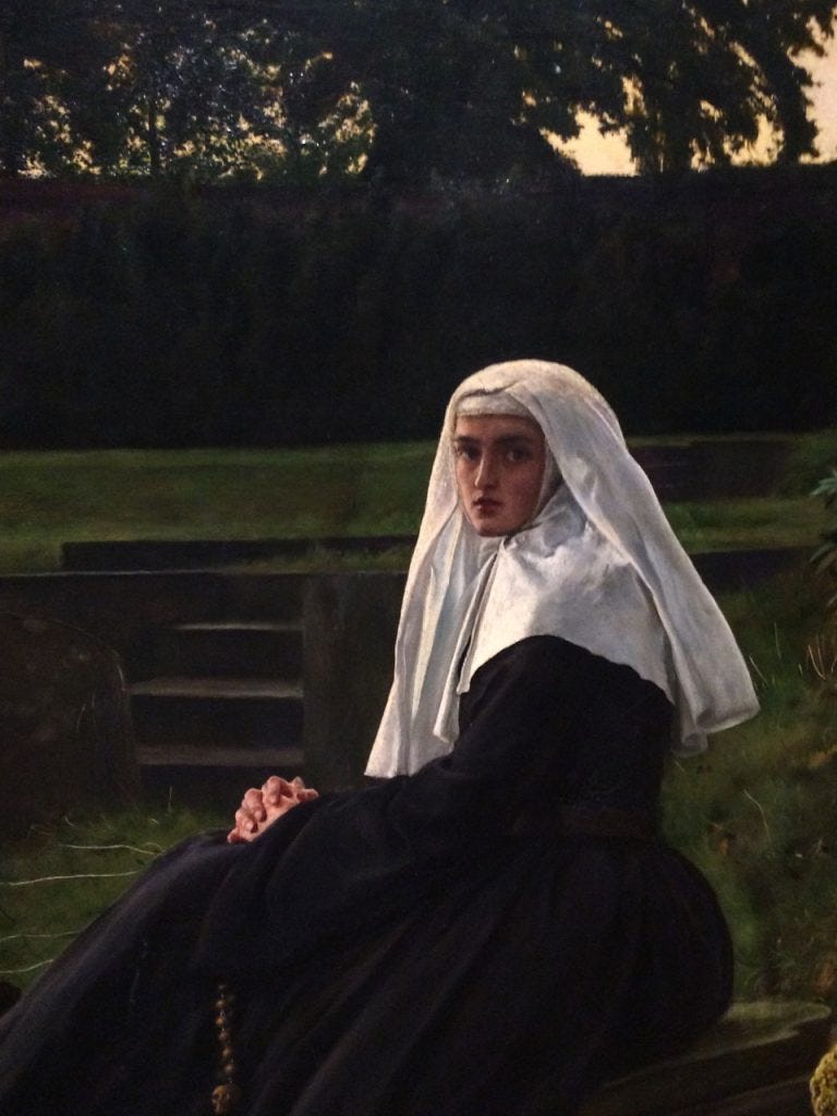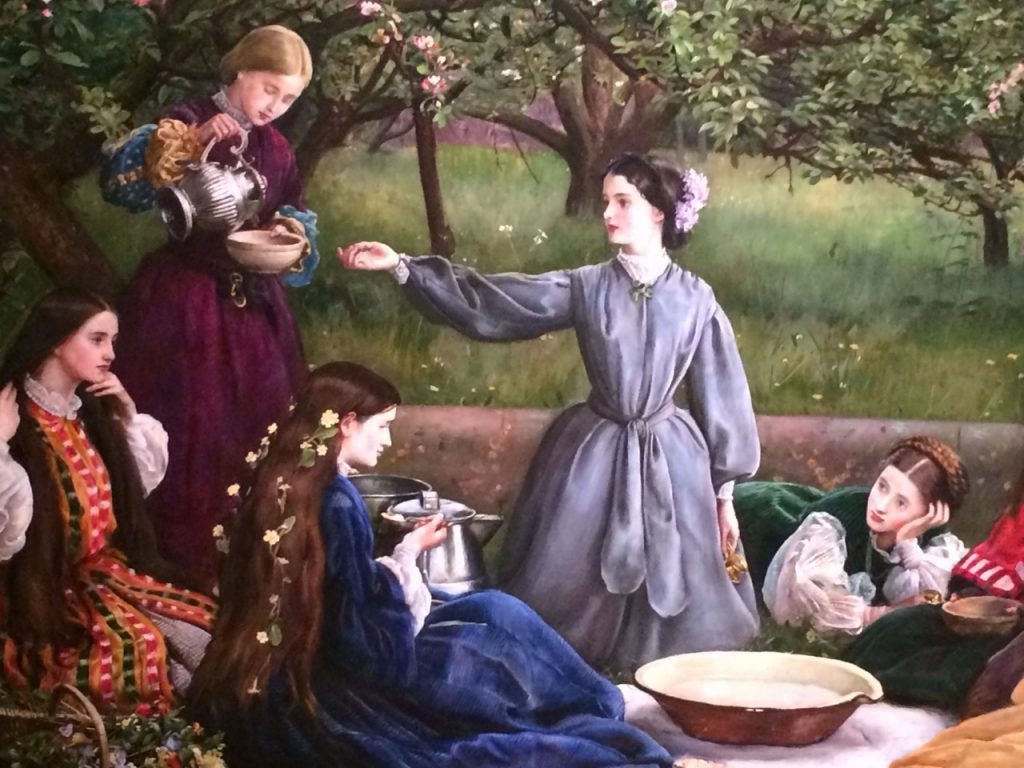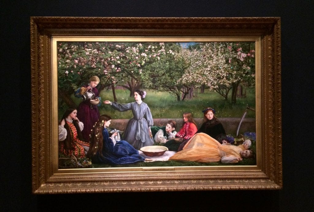 I was particularly taken with the large works of John Everett Millais (without people in them you won't realise how large some of these paintings actually are but they take up an entire wall), which seemed to glow with an inner light of their own. The Vale of Rest, capturing the glow of the setting sun, I found particularly mesmerising.
