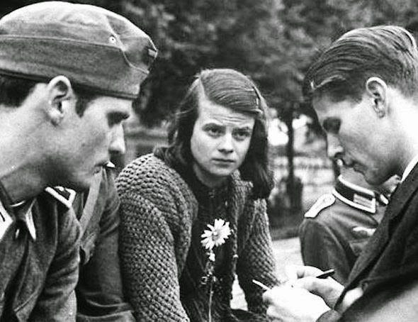 In 1943, Scholl and the other members of the White Rose were arrested by the Gestapo for distributing leaflets at the University of Munich and taken to Stadelheim Prison. After a short trial on February 22, 1943, Scholl, her brother Hans and their friend Christop Probst, all pictured here, were found guilty of treason and sentenced to death.