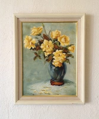(And lest you think it is all greyness here, above is another painting I bought in an old wares shop, to show I have a little sunshine and happiness.)