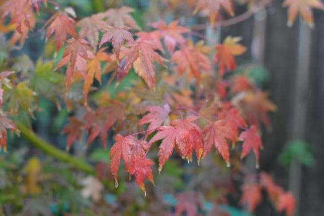 One of my Japanese Maples doing Autumn, in the rain.