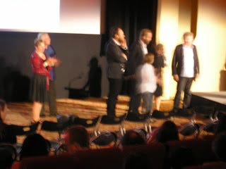 I took a bunch of photos without the flash so I wouldn't be disruptive, which didn't turn out on my unsophisticated camera. But in this one is Glendyn, Hugo Weaving and the amazing little Tom Russell.