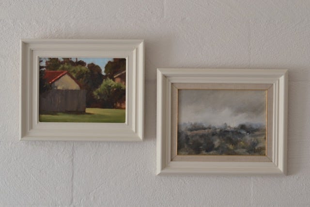 The two above both got a new coat of a Porters Chalk Paint called Milk. The frame on the right was too white, and the frame on the left was a grassy green. I liked them both with the actual paintings but they just weren't working in the room or working together. I end up doing about three coats of whitish colours, so it can take a while with all the drying time in between but we got there in the end.