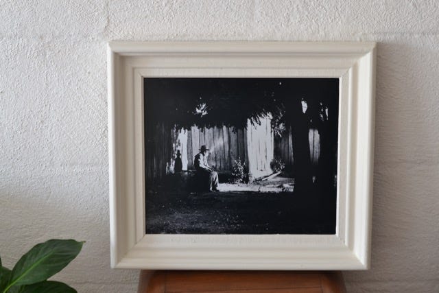 This print off an old glass slide also got a Milk painted frame. (All the frames are from old paintings gathered in second-hand shops. I haven't actually decided on the hanging configuration or location of everything yet.)