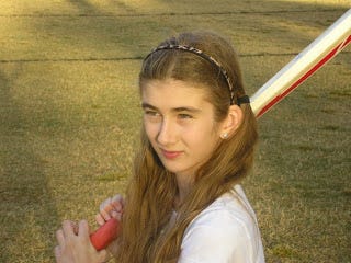 These are my dancing girls, taken at the local park when I was up in May. I'm not too sure what B is doing with cricket bat. (And nope! - neither of them look anything at all like me).