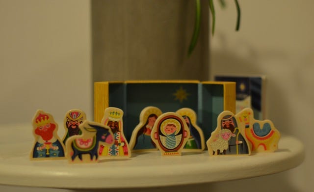 I bought this little wooden nativity scene this year. One day I am going to make one, but till then.